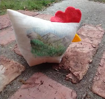 They became associated with the Traveling Chicken and Monster Show when the selection of merchandise was much more varied and included handmade soaps, sun painted clothing, bags and purses and more.....